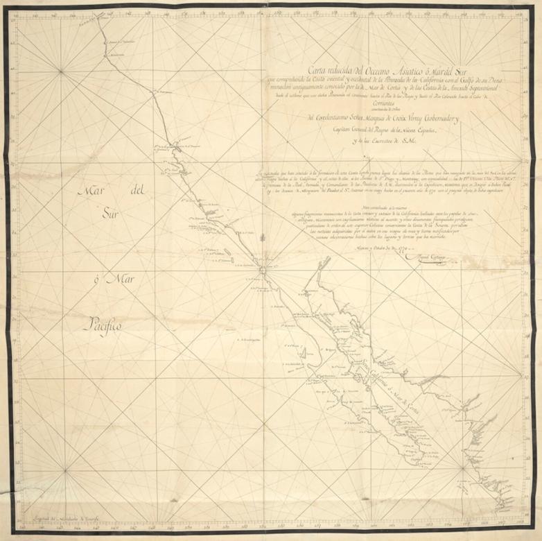 New York – On October 25, Bonhams will present the most important 18th century map of California as the highlight of its Exploration and Travel Literature, featuring Americana sale in New York. Estimated at $600,000 – 800,000, the extraordinarily rare, original manuscript map of costal California is signed by Miguel de Costansó (1741-1814), a Catalan cartographer, cosmographer, and engineer for the Portola Expedition who created the map, and dated Mexico, October 30, 1770. It is the first map to depict San Francisco Bay and marks the beginning of the Spanish settlement in the state. The map exists in three versions: an early version in manuscript, not showing San Francisco Bay, this version in manuscript, and the 1771 printed map produced in Spain from this version.