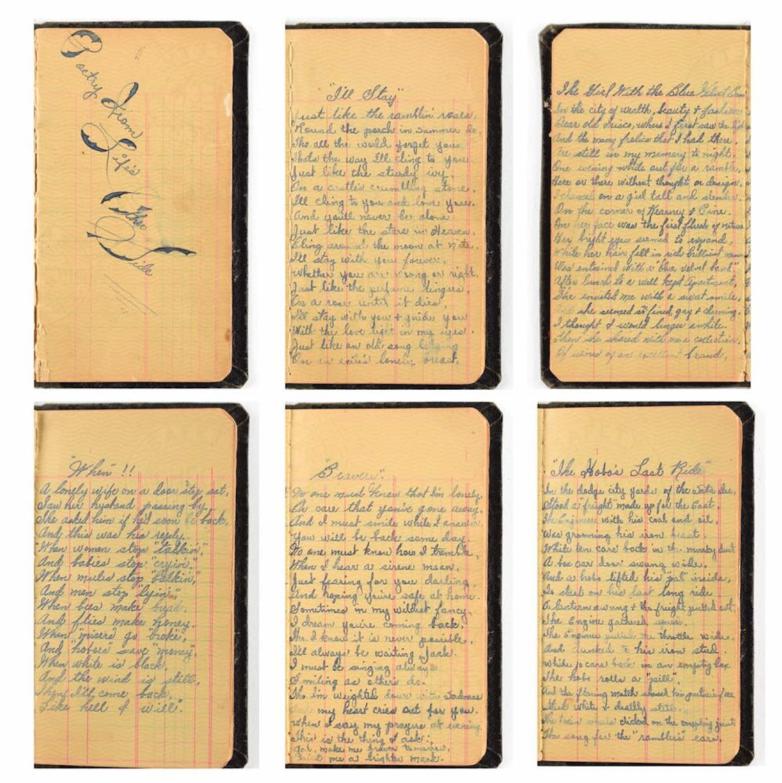 Bonnie Parker's handwritten poem book, "Poetry from Life's Other Side"—ten handwritten poems by Parker while jailed in 1932. Featuring a mix of Parker's original creative compositions and renditions of popular folk ballads, written by Parker while she was held in Kaufman County Jail, after being arrested for the botched armed robbery of a hardware store with Clyde Barrow, Ralph Fults, and Raymond Hamilton. (Estimate: $25,000+)