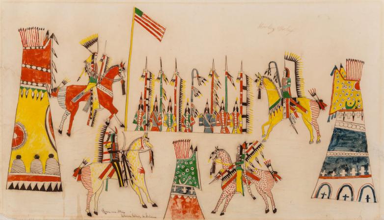 A Southern Cheyenne Ledger Drawing by Howling Wolf soared to more than five times its low pre-auction estimate before finishing as the auction’s top lot and establish the new standard for individual ledger drawings.