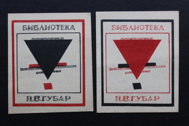 The Ohio-based Productive Arts, purveyors of Russian & Soviet art, design and photo related books, journals, magazines, posters, publications, and ephemera, intend to showcase a set of Suprematist bookplates, “Biblioteka P.V. Gubar.” The design is attributed to Ilya Chasnik, circa 1925.