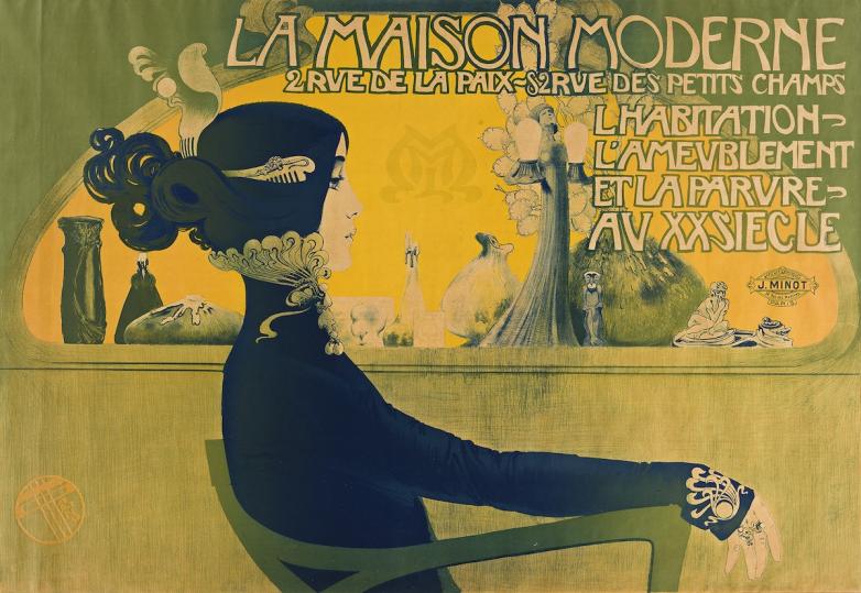 The sale is led by Orazi Manuel’s La Maison Moderne, 1900, designed for the prestigious Parisian art and home décor store dedicated to Art Nouveau. The affiche, from the height of the belle époque, is expected to bring $40,000 to $60,000. Additional highlights of the era include a run of works by Alphonse Mucha, notably a trio of posters dedicated to actresses of the time: Tragique Histoire d’Hamlet / Sarah Bernhardt, 1899 ($15,000-20,000), Medee / Sarah Bernhardt, 1898 ($12,000-18,000), and Leslie Carter, 1908 ($12,000-18,000). Henri de Toulouse-Lautrec is present with poster portraits Aristide Bruant Dans Son Cabaret, 1983 ($15,000-20,000), and La Revie Blanche, 1895, featuring Misia Natanson ($10,000-15,000).