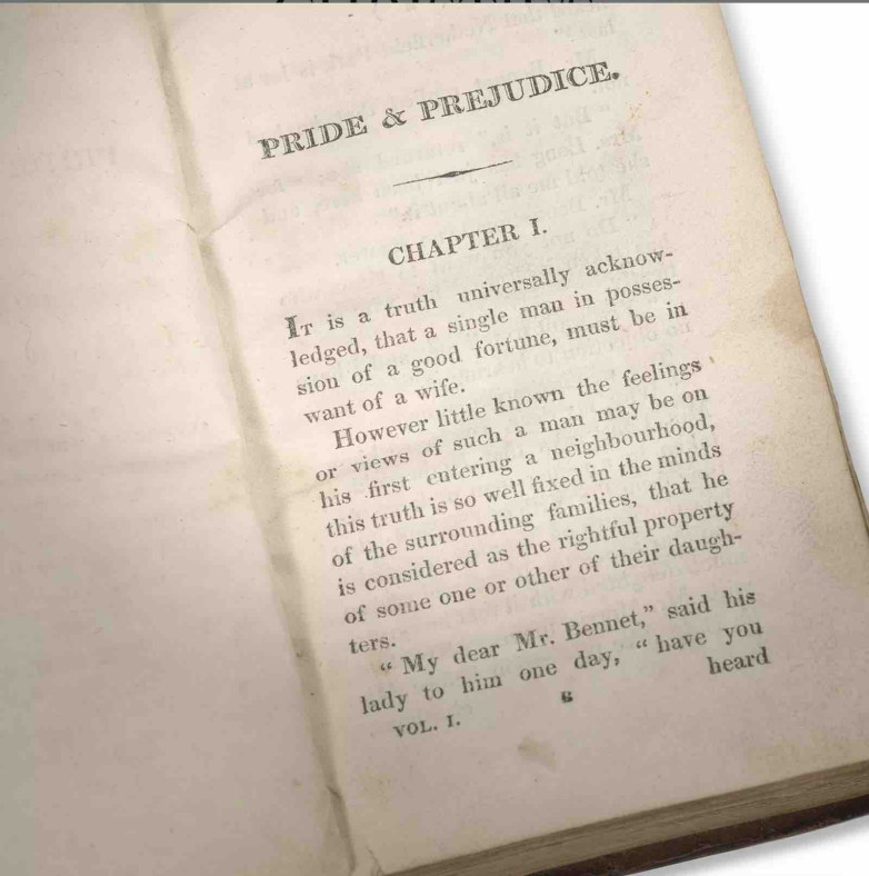 Pride and Prejudice , first edition, contemporary binding, ownership inscriptions dated less than eight weeks after publication. Estimate $120,000-$180,000.
